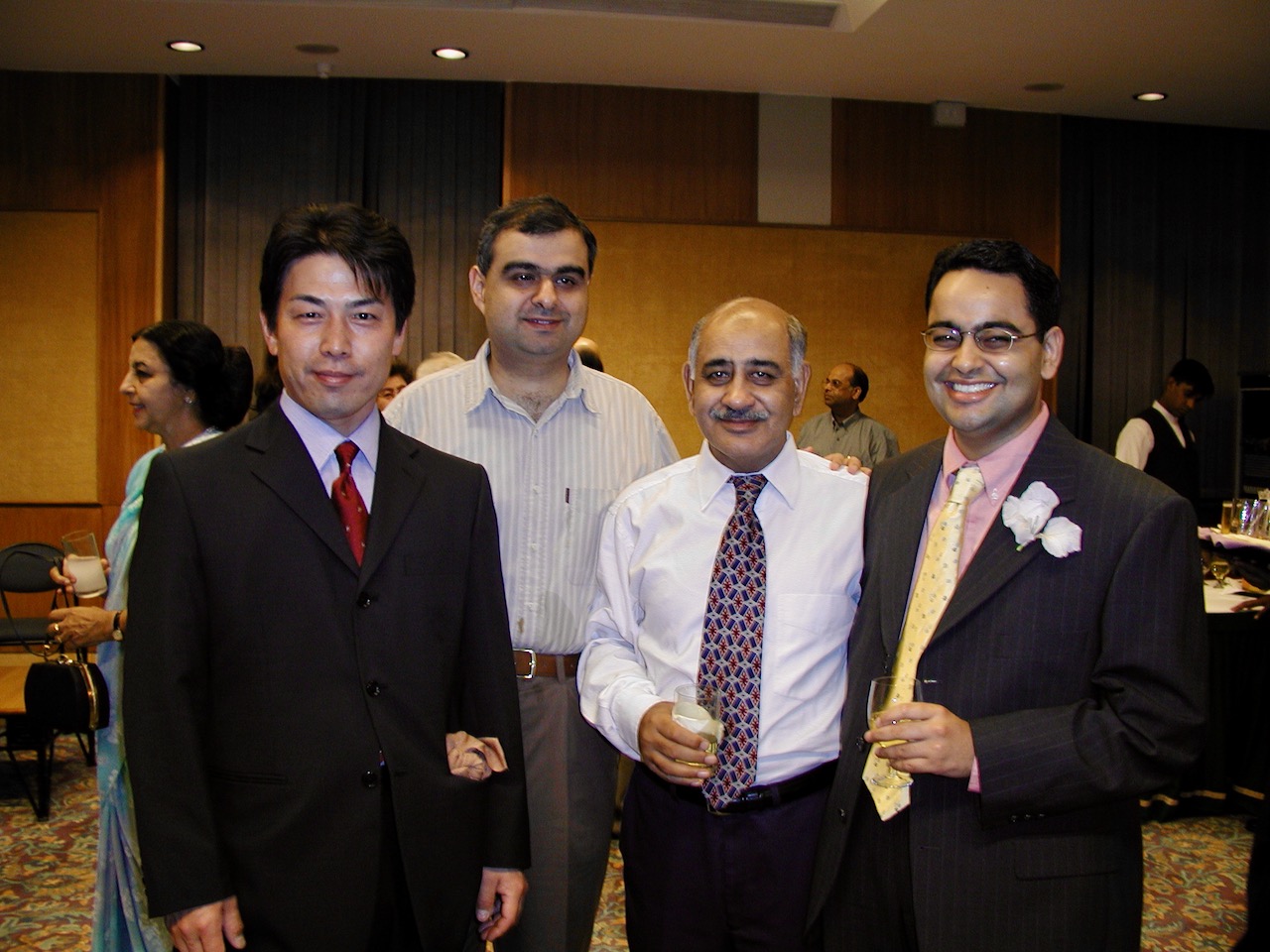 義父ロメイシュとその隣はアルヴィンドの従兄弟アディティヤ。このパーティーを主催してくれたランジートの一人息子で、アルヴィンドにとっては「唯一の」従兄弟でもある。すなわち、兄弟のようにして育った。K夫は、会う人会う人から「いい体格をしている」「なにかスポーツをしているのか?」「かっこいい」とうらやましがられていた。しかも主に男性から。インド人男性が好むタイプなのか??