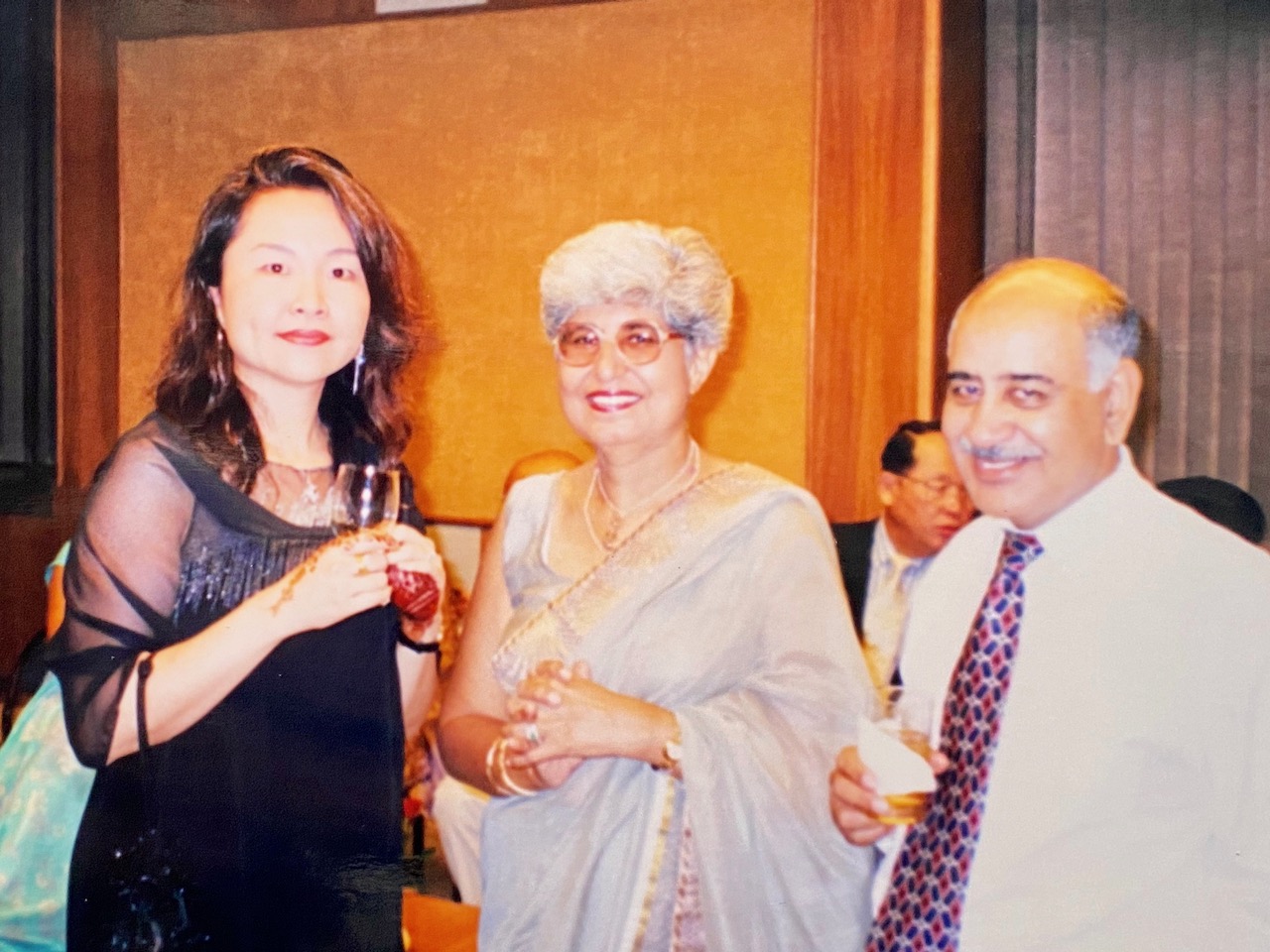 義姉スジャータ。その隣はスジャータの夫、ラグヴァン。高名な生物学者である。彼の姿を見るや、あゆみ妹がわたしに耳打ち。「ねえ、ラグヴァンの髪型、あれでいいの?」。飾り気のないお方なのだ。※注/SARS、インフルエンザ、HIVのワクチン研究に貢献してきたIIS(インド理科大学院)教授のラグヴァンは、COVID-19のワクチン研究においても、尽力している。(20年後のコメント)