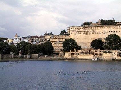 ホテルからは湖畔の宮殿が見える。ラジャスターン州最大の宮殿らしい。今思えば見学しておくべきだったと後悔の念が立つが、当時のわたしはともかく体調が悪く、目前にしながら行かなかった。ちなみに湖では、少年たちが泳いでいた。