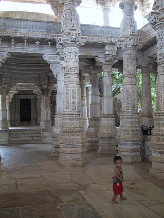 2時間以上のドライブを経て、ようやくたどりついたラナクプール寺院。15世紀に建立された建築物で、全てが大理石でできている。ジャイナ教の古代太陽寺院だという。