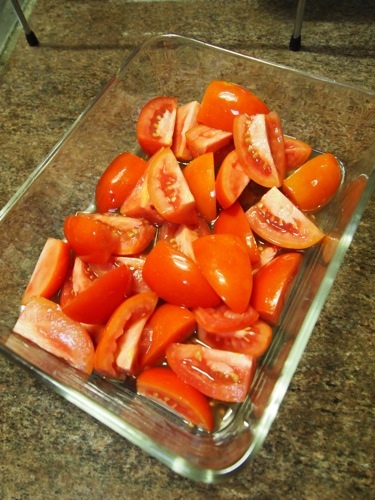 右上は、オーガニックのトマトの甘酢漬け。を作っているところ。友人に教わったのだが、これがかなりいけるのだ。