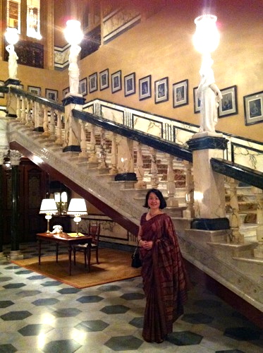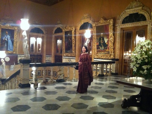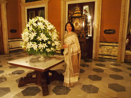 ちなみに夕食の際には、サリーを着用したのだった。サリーはまた、こういう場所にもよく似合う。
