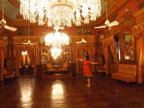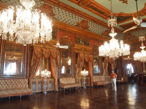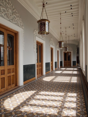 宮殿内は「欧州の建築様式にイスラムの意匠を加味したもの」で、インド的な建築様式は取り入れられていない、とのことである。