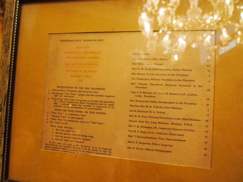 書斎の脇には、当時、ニザームが使用していた電話番号のリストが置かれている。首相をはじめとする要人への直通電話番号が記されているのが興味深い。