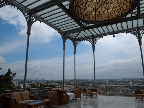 ホテルには、インド料理とイタリアン(コンチネンタル)、2種類のレストランがある。そのダイニングエリアの中央に、ハイデラバードの町並みを見下ろすテラスがある。