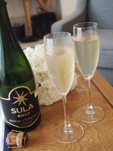 ともあれ、まずはインド産SULAのスパークリングワインで乾杯。仕事やら、家庭内のなんやかんやの雑事から開放される、貴重な2泊3日の幕開けだ。
