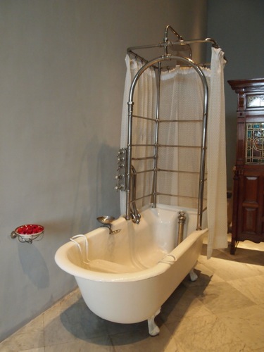 このバスタブについているパイプは、全方向から「ウォータージェット」が楽しめる代物だとか。今とさほど変わらぬ「モダンな」造りに驚かされる。