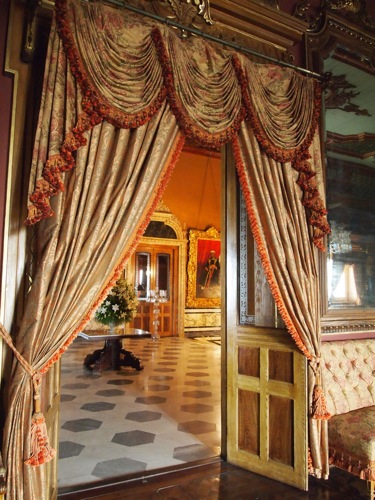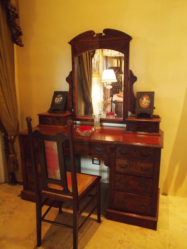説明によれば、やむなく新しい調度品に取り替えたものもあるらしいが、大半がそもそも宮殿にあったものをそのままに生かしているとのこと。