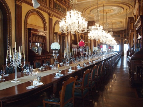 そしてここが、必見のバンケットホール。33メートルのテーブルに、88の椅子が並んでいる。長っ!!