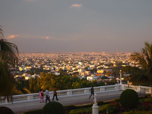 グラスを片手に、ハイデラバードの町並みを見下ろしながら、マネージャーに話を聞く。