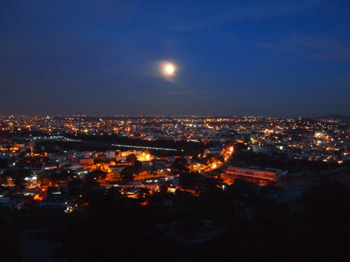 しかし、一旦街へ入れば、ここはインド。なじみの喧噪をくぐりぬけた先に、やがて小高い丘が見える場所へ至る。