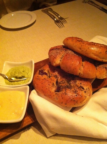 そして2日目のディナーはイタリアン。食前に出されるパンを食べるとお腹がいっぱいになるとわかっているのだが、おいしくて、ついつい食べてしまう。