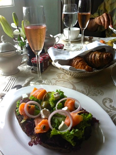 そして2泊3日の短い滞在も終わり、最後の朝食。昨日は勧められても飲めなかったが、今日は爽やかに、朝からピンク・シャンパンを。
