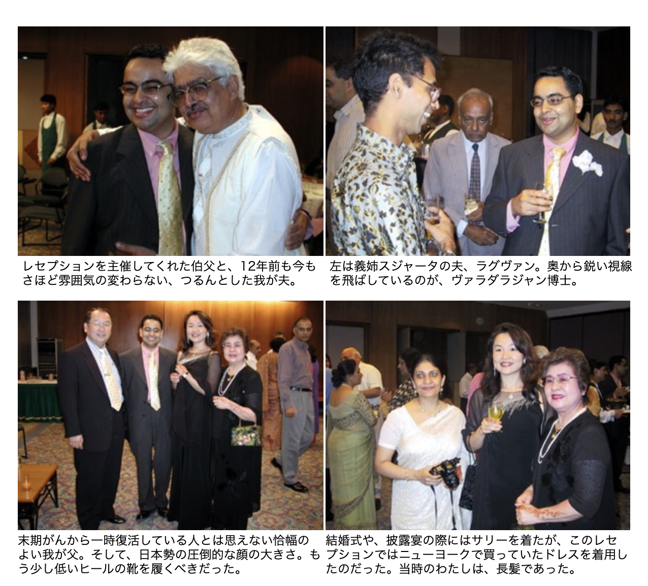 結婚にまつわるイヴェントは、都合4日間に亘り、毎晩のように行われたが、2日目、伯父の主催によってハビタットセンターで行われたレセプションでは、初めて大勢の身近な親戚やファミリーフレンドと対面した。その際、ヴァラダラジャン博士とゆっくりお話ししたのだが、彼は、日本で開催された世界科学者会議に幾度か足を運び、その際には、天皇陛下とお言葉を交わす機会があったという。