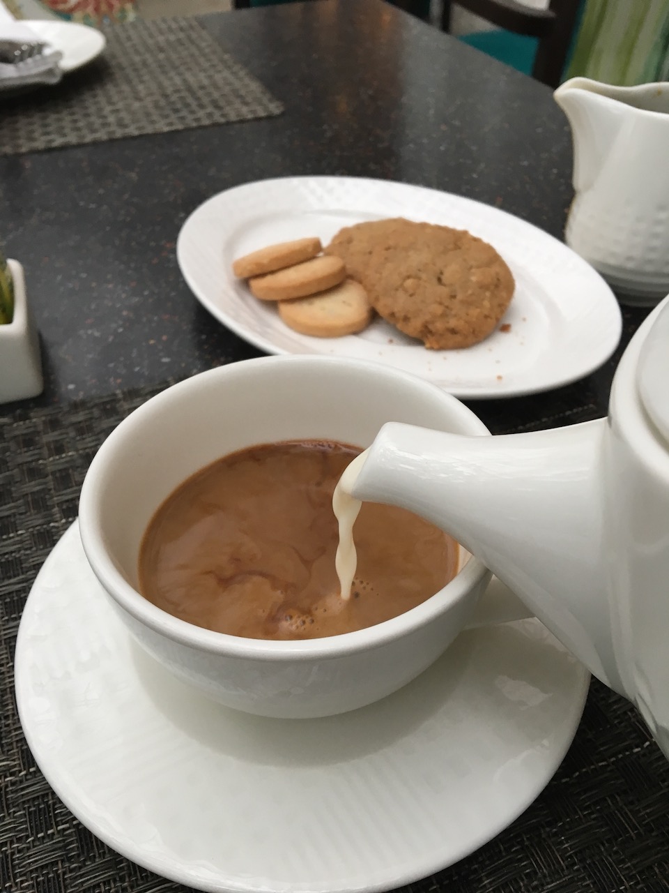 ⬆︎高級ホテルで注文する「サウスインディアン・コーヒー(もしくはフィルターコーヒー)を、デコクションで。しかもコーヒーとミルクをセパレートで出してほしいと頼むと、実演してくれるところもある。過去十数年の間にも、イタリアンなマシンで出されるカフェラテやカプチーノが一般的になったけれど、わたしはこの「昔ながらの出され方」が好き。自分で「濃度調整」しながら飲むのも楽しいのだ。