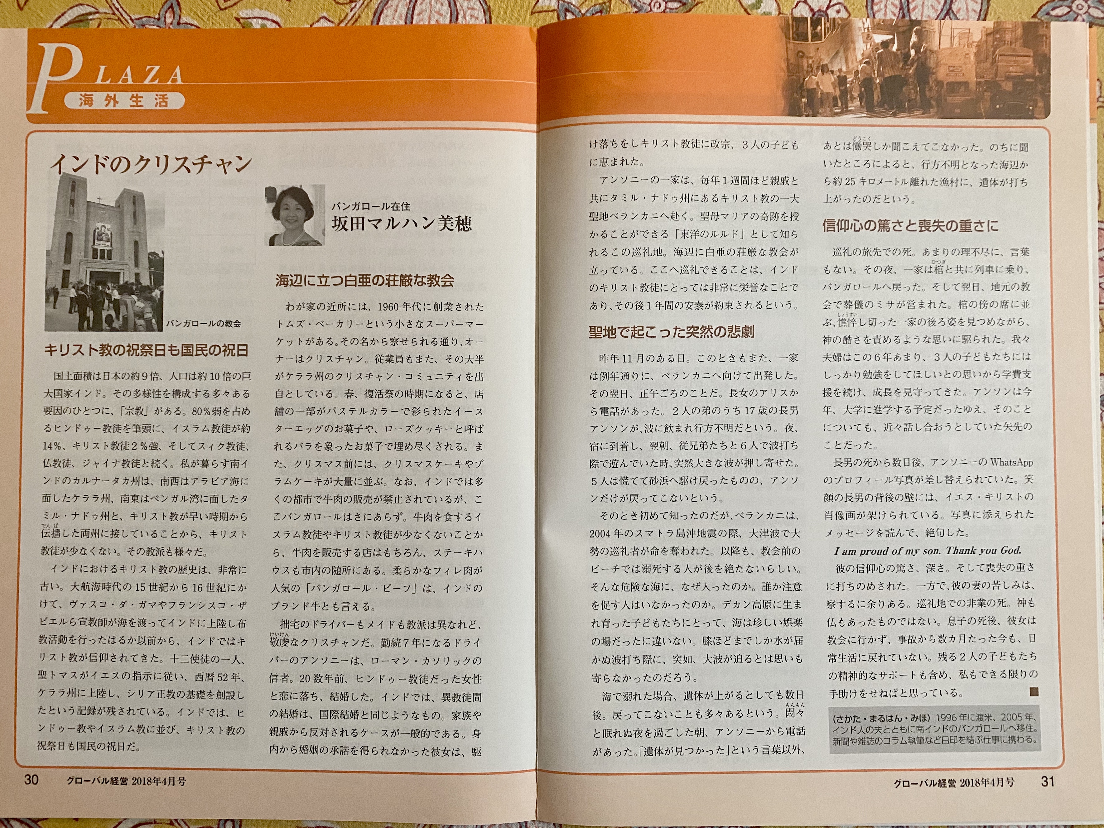 以下、4年前の記録を転載する。最下部には、日本在外企業協会刊『月刊グローバル経営』に寄稿した記事の写真も載せている。インドにおけるキリスト教についての概要が、おわかりいただけるかと思う。