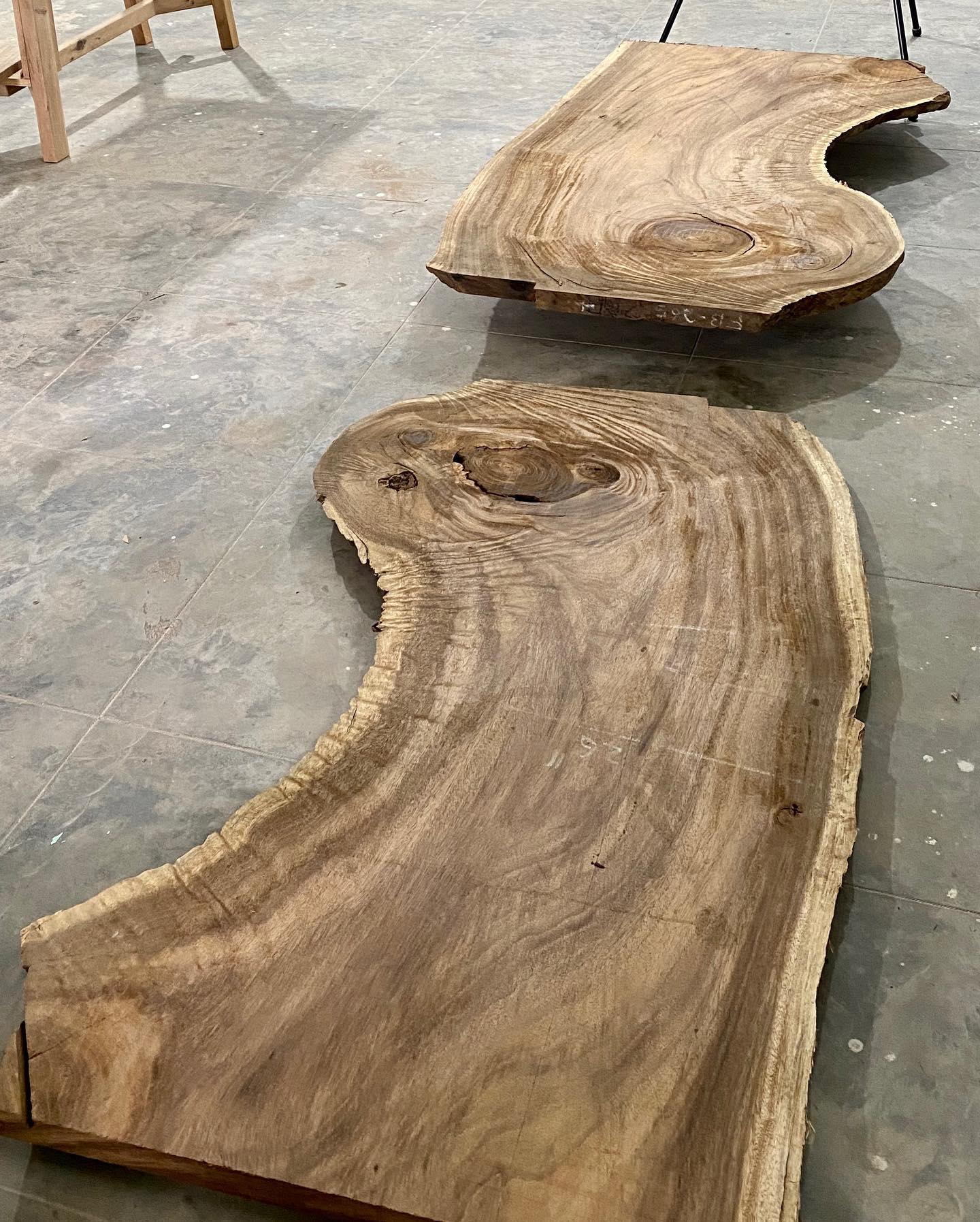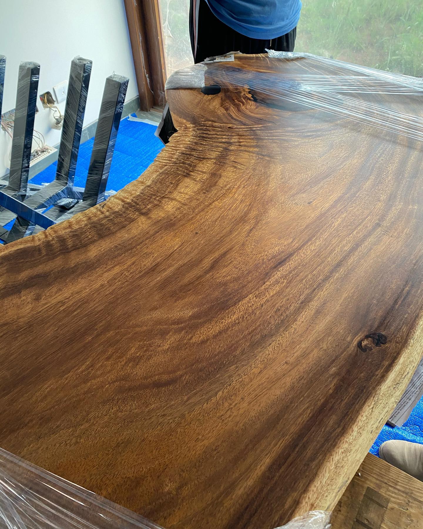 ある夜、ネットで検索して発見した木工家具職人、PERMANENT OBJECTSの机やテーブル類も届けられた。