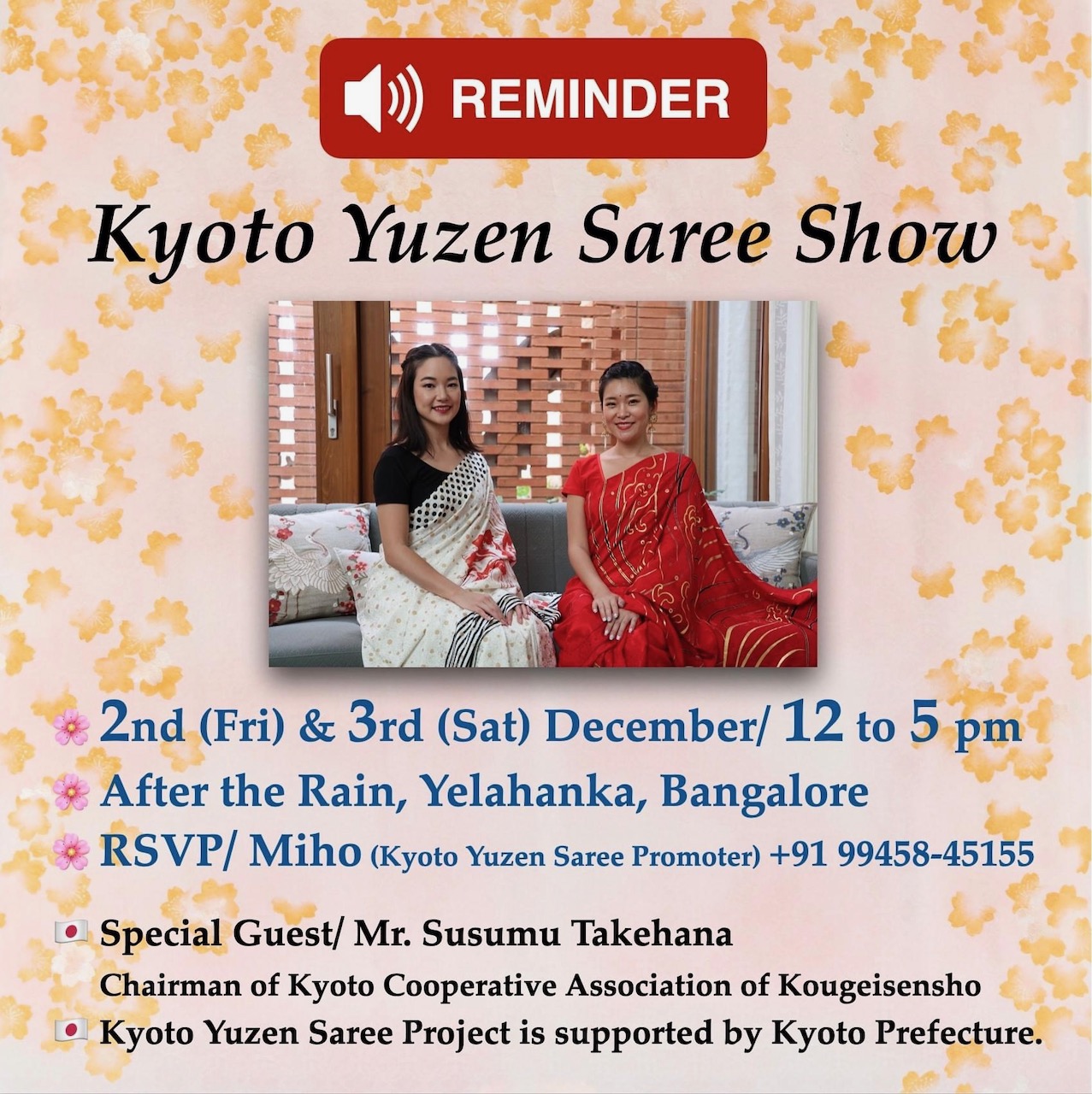 Tomorrow and the day after tomorrow, Kyoto Yuzen Saree Show will be held in Bangalore.