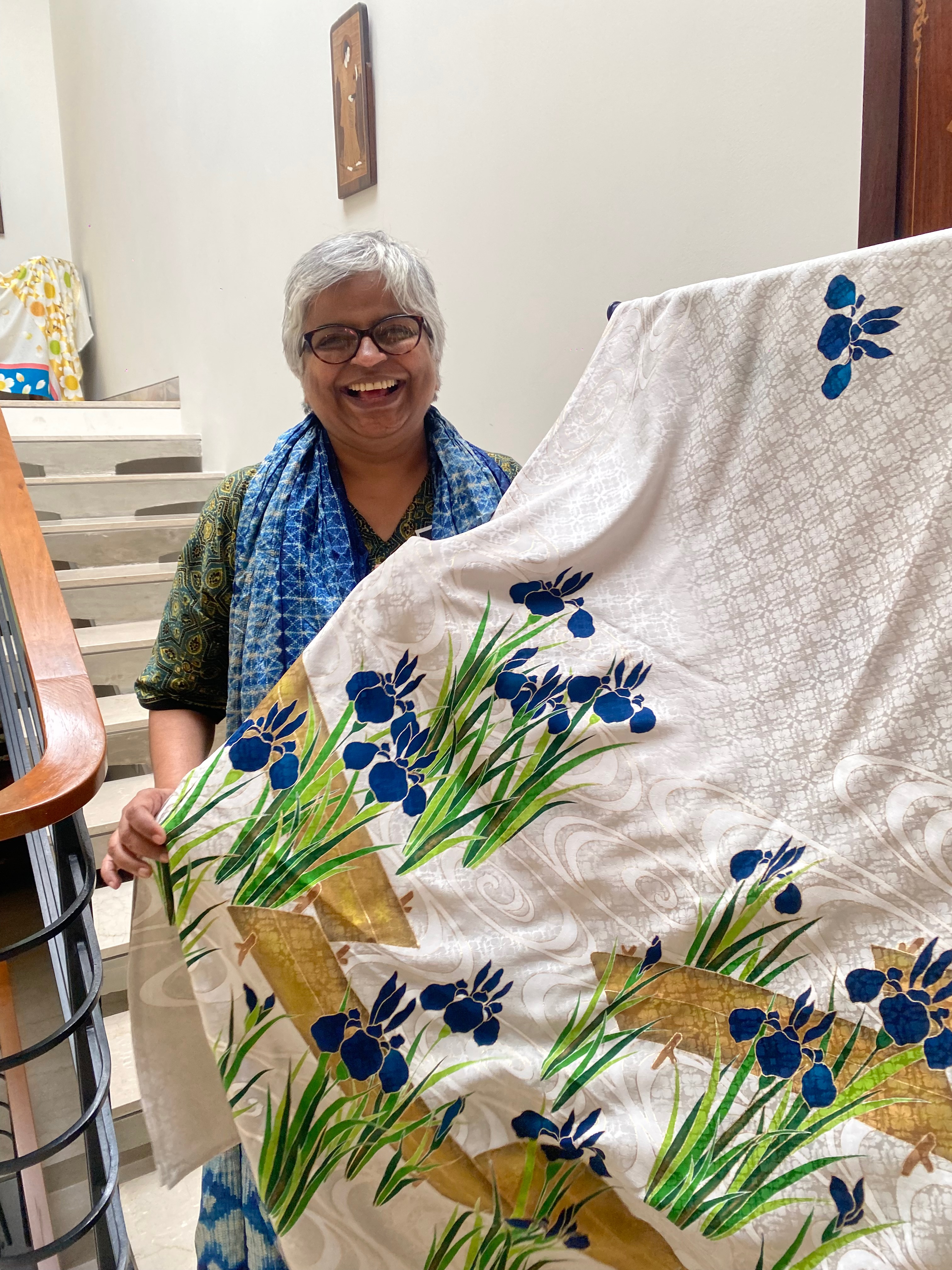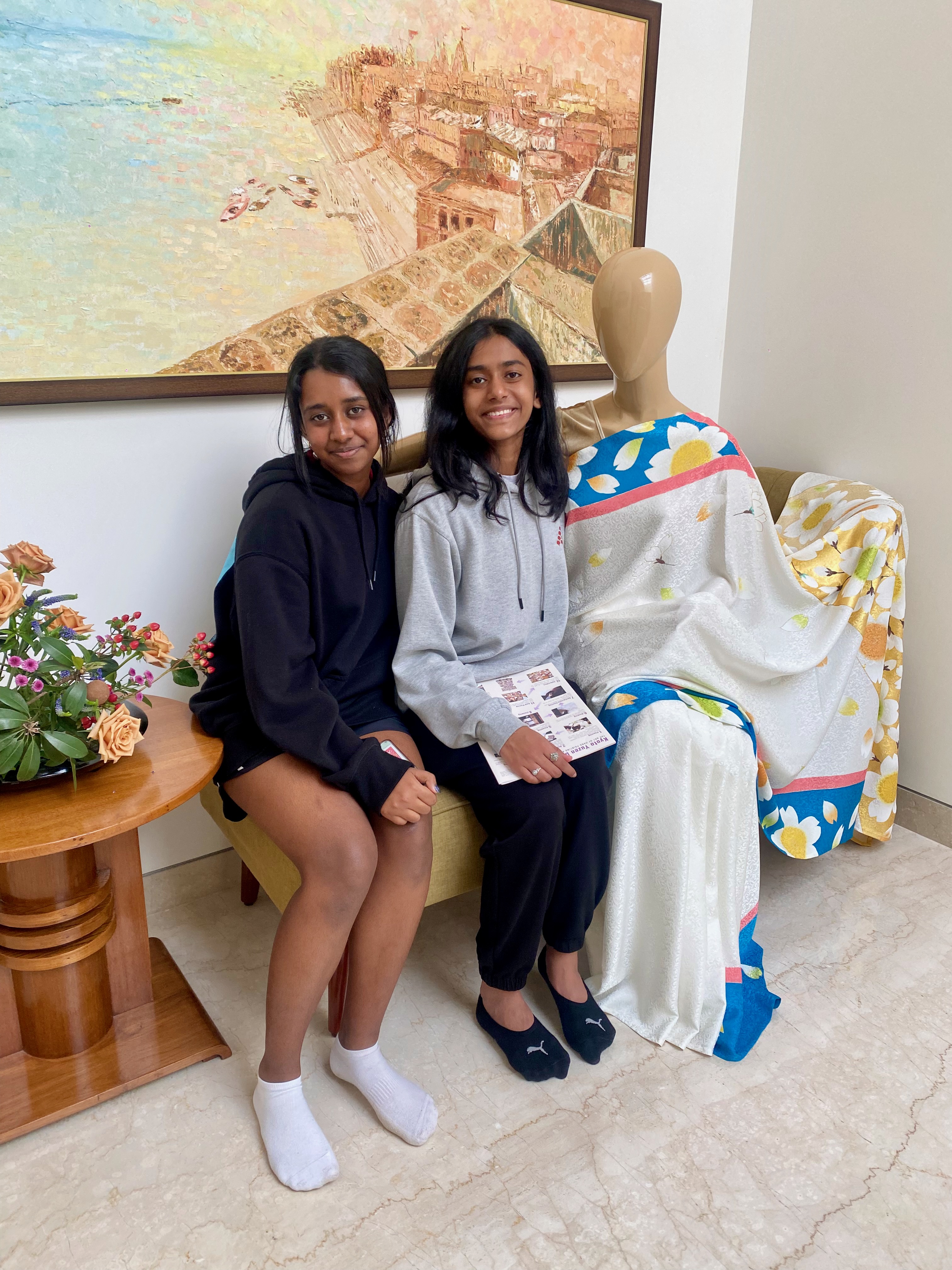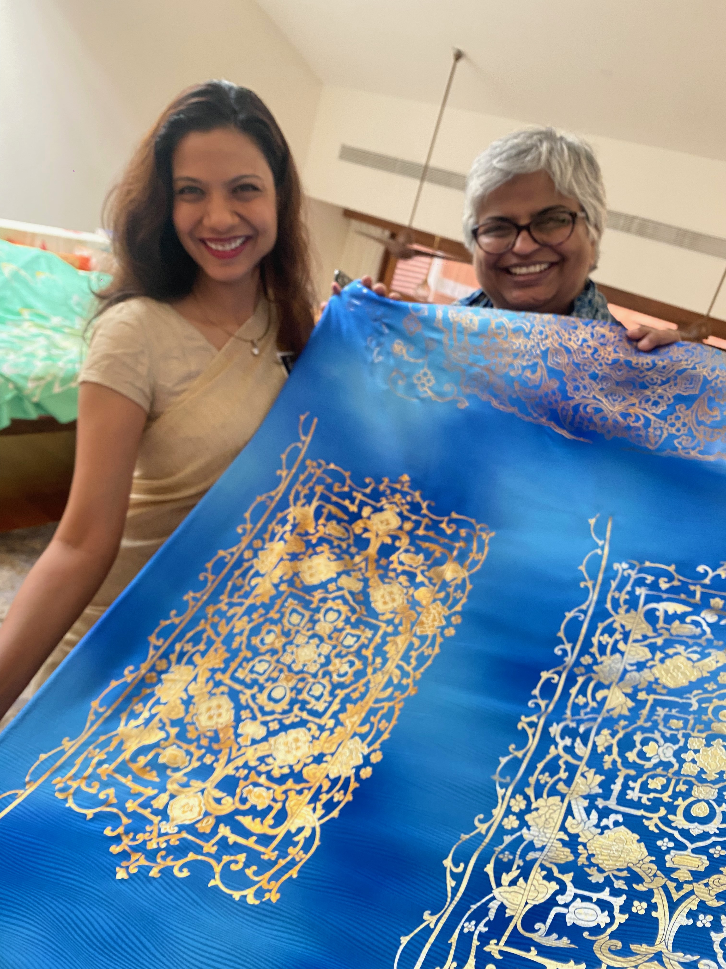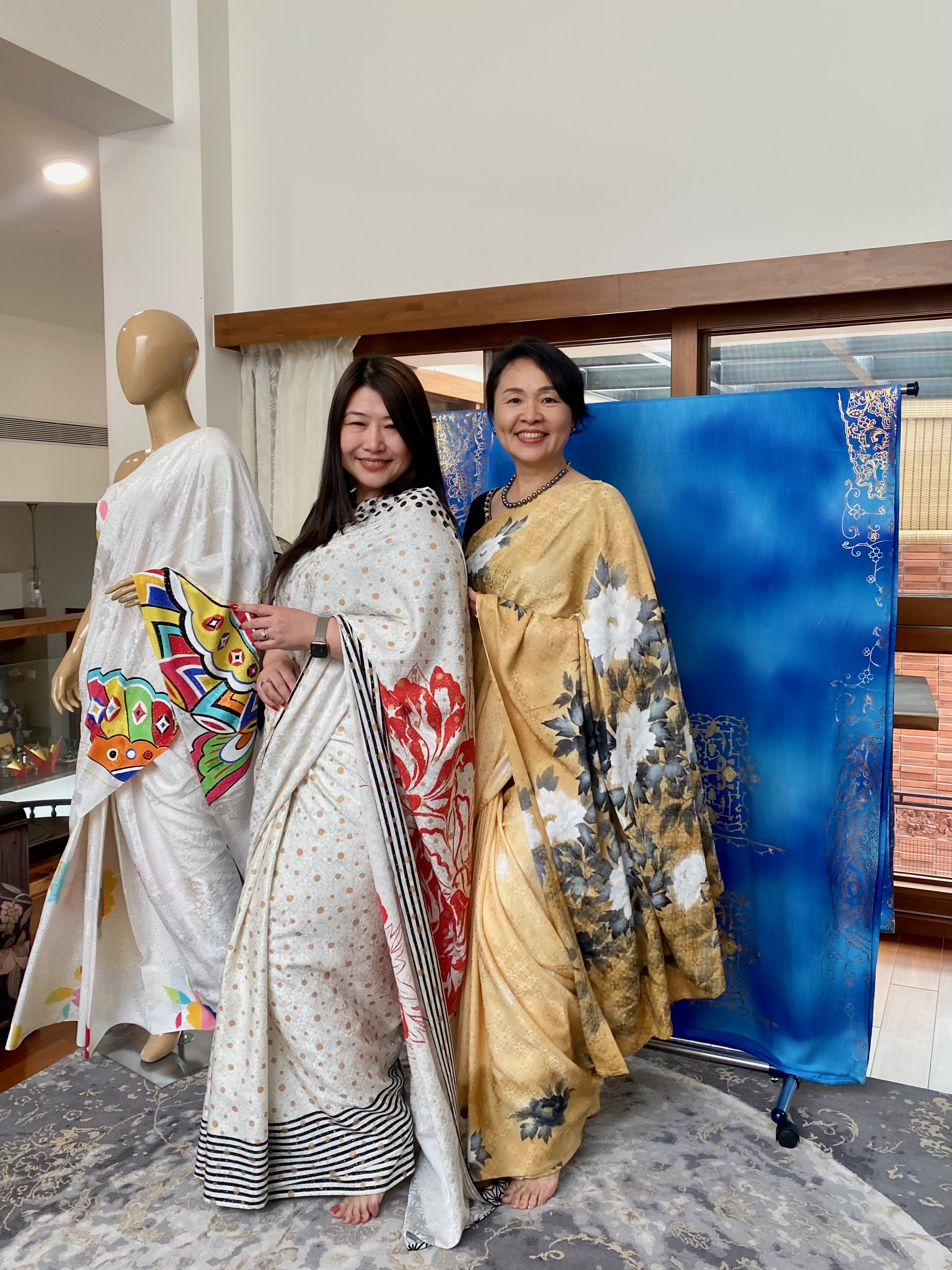 They touched the Kyoto Yuzen Sarees, asked about the creative process and showed great interest in them.