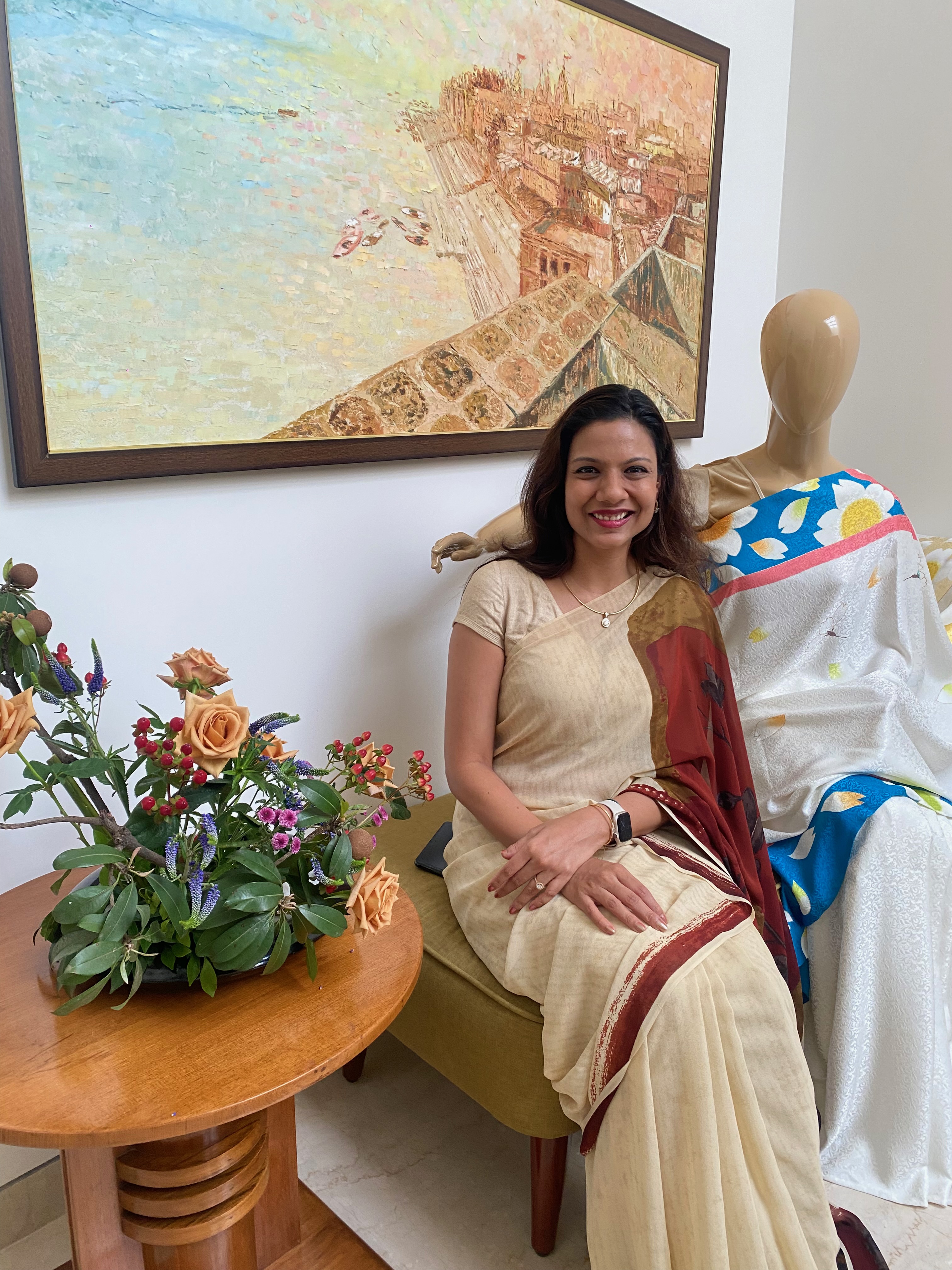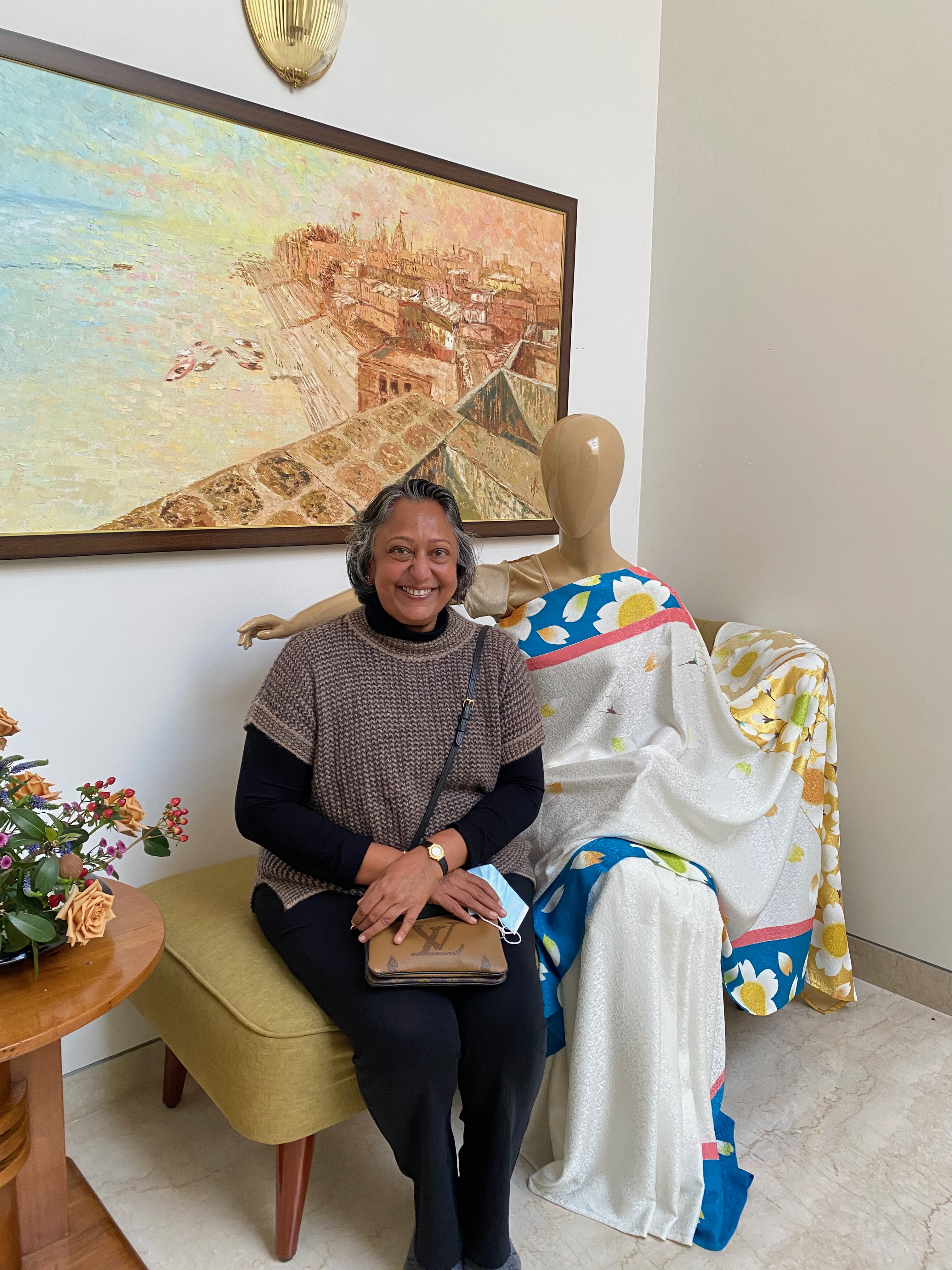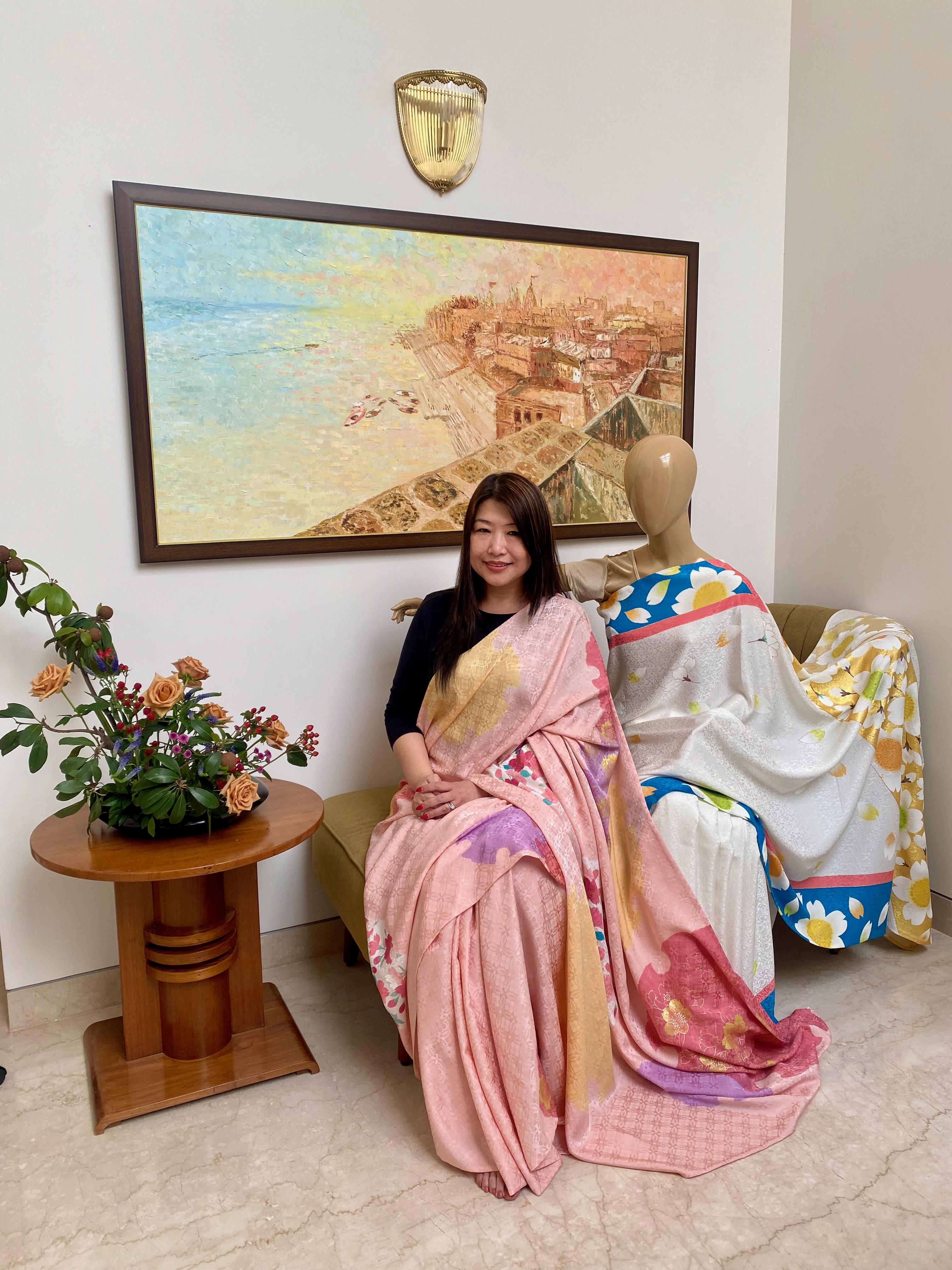 They touched the Kyoto Yuzen Sarees, asked about the creative process and showed great interest in them.