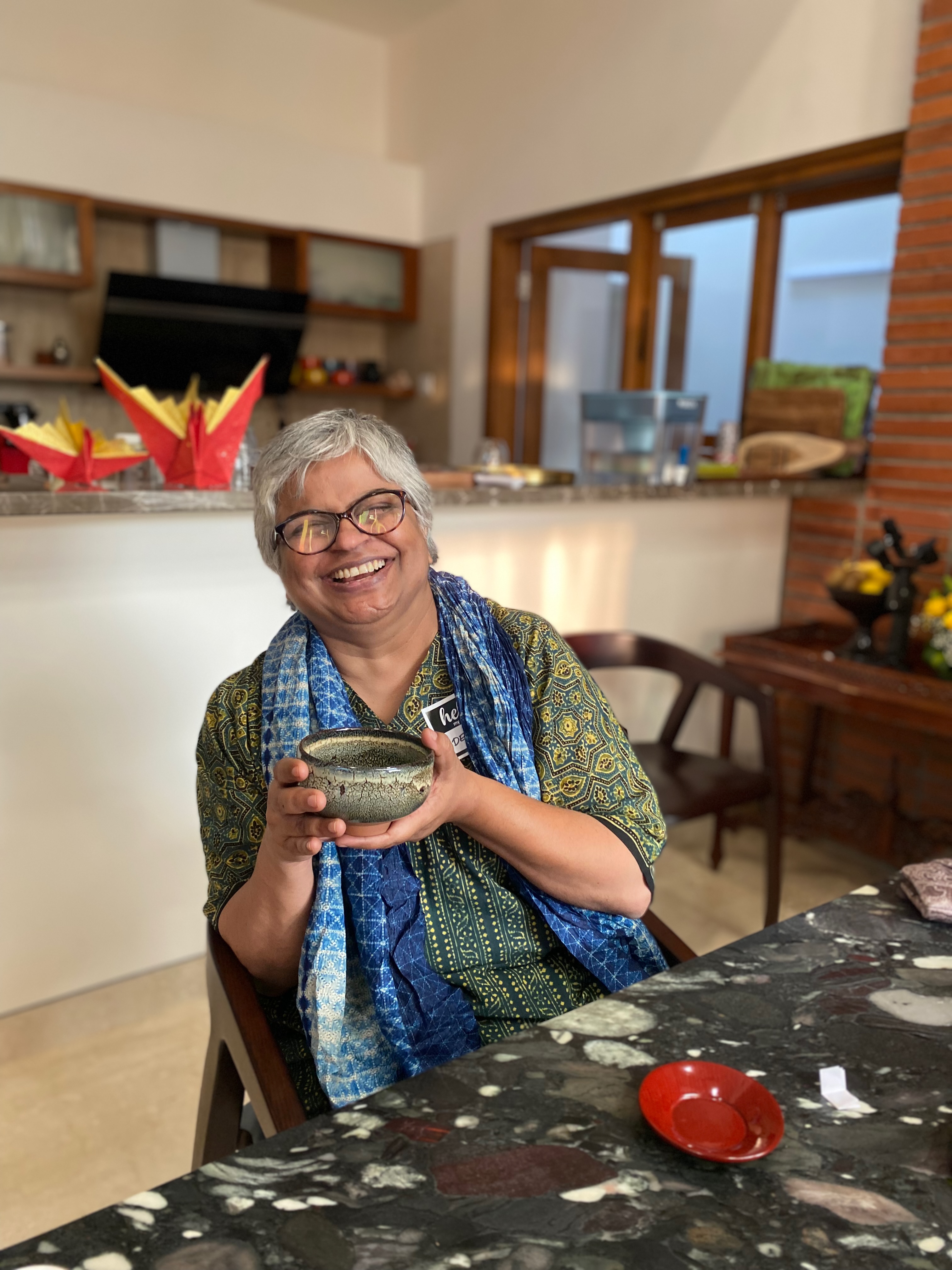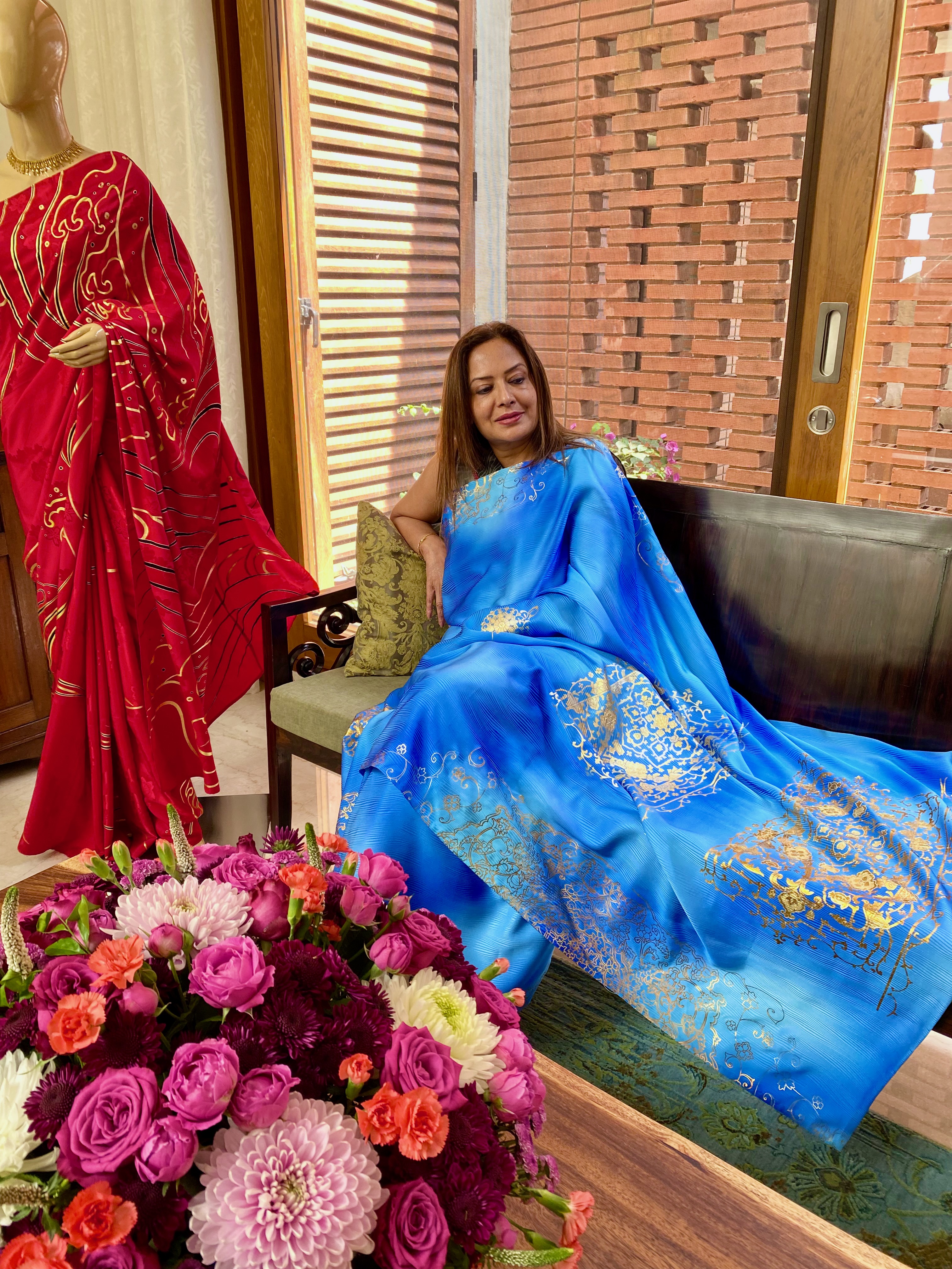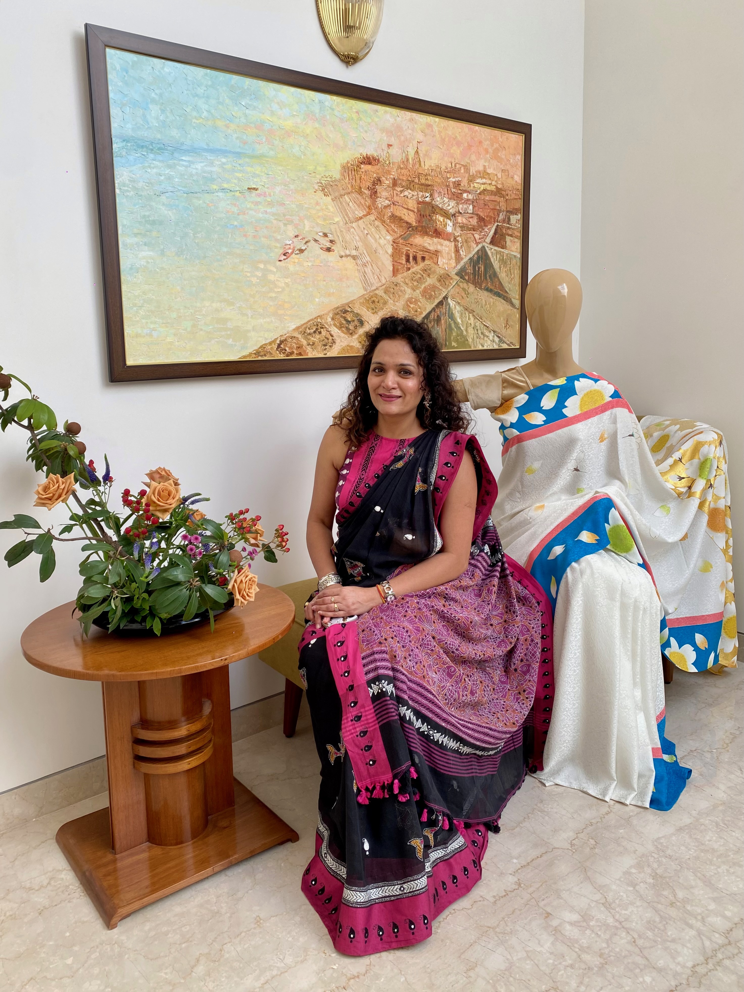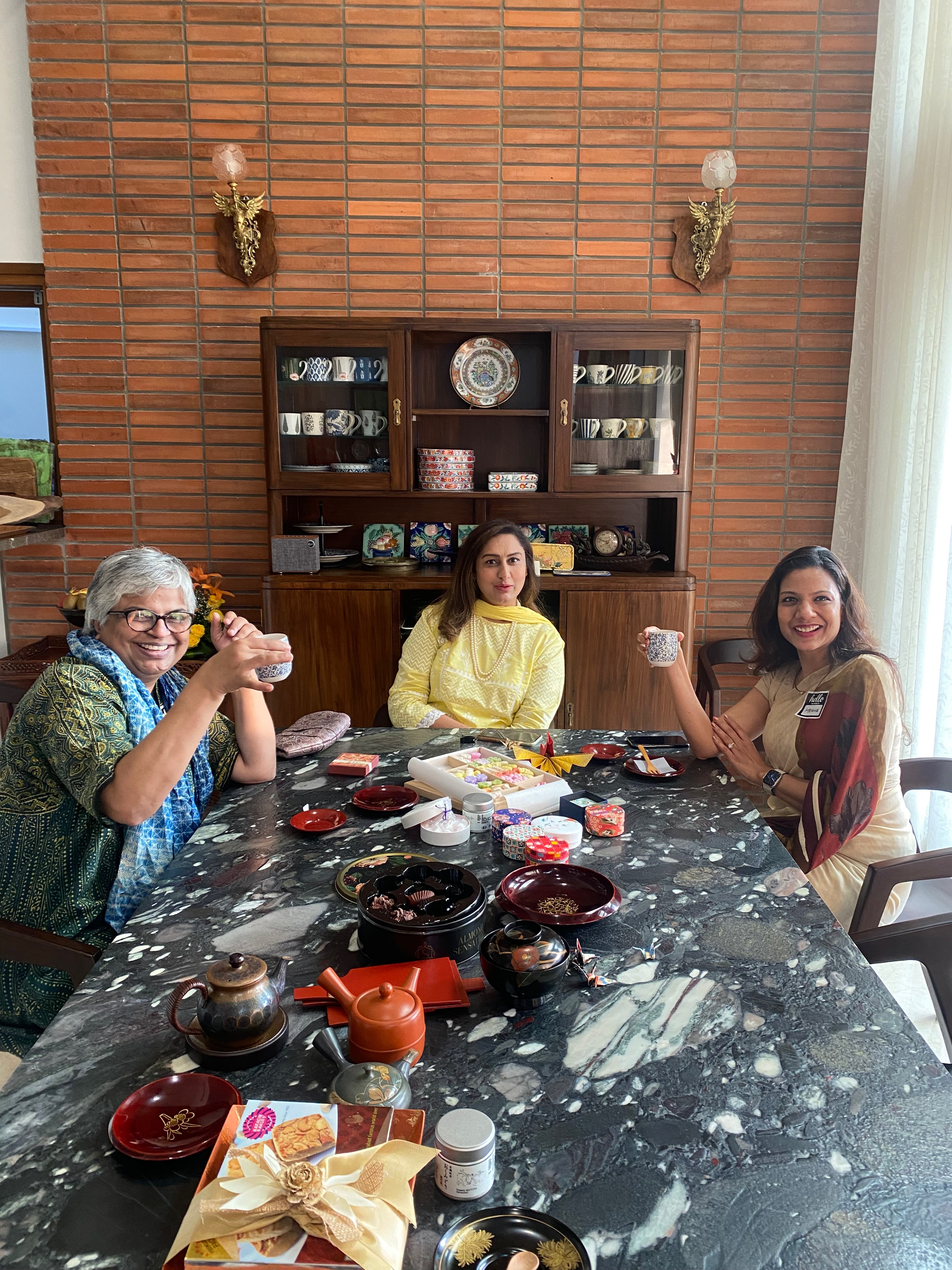 They touched the Kyoto Yuzen Sarees, asked about the creative process and showed great interest in them.
